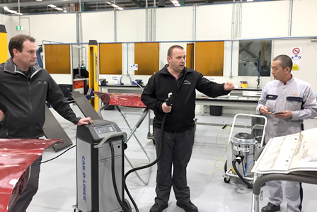 認定ボディショップは工場の設備はもちろん、作業担当者の要件も非常に厳しく指定されています。ヤナセオートシステムズでは認定BPセンターの板金メカニック4名が3週間に渡り、オーストラリアや、ドバイのトレーニング施設でスチールとアルミニウムの国際的な溶接資格を取得し、ジャガー・ランドローバーのボディ修理の研修を受講してきております。