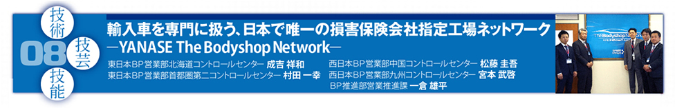 一倉: YASでは、19の提携保険会社、全国約100社の加盟工場(直営工場を含む)と手を結び、保険契約者様の事故車の修理を完結する入庫誘導プログラム(DRP:Direct Repair Program)という事業を行っています。2003年よりこの事業を開始し、10年という節目を迎えました。全国の加盟工場を束ねるのは、「YANASE The Bodyshop Network」。当社が定めた厳しい基準をクリアした、高品質で安定した技術・サービスを提供できる工場のみが加盟する修理工場ネットワークです。